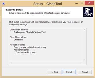 GmapToolSetup・・・.exeをdownloadしダブルclickすると上記のSetup画面が立ち上がる。 | 「Next」 | ||
