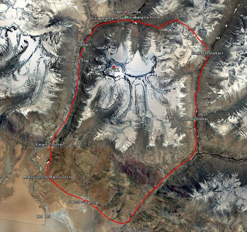 | 例えば、KailashのTrackをGoogle Mapsに表示させるにはA,B二つの方法がある。 Aは最初の画面のGet started now!から入る方法、Bは詳細設定が可能な「Google Maps」から入る方法。 表示される地図の概要を知るにはAでよいが、画像の保存はBしか出来ない。 |